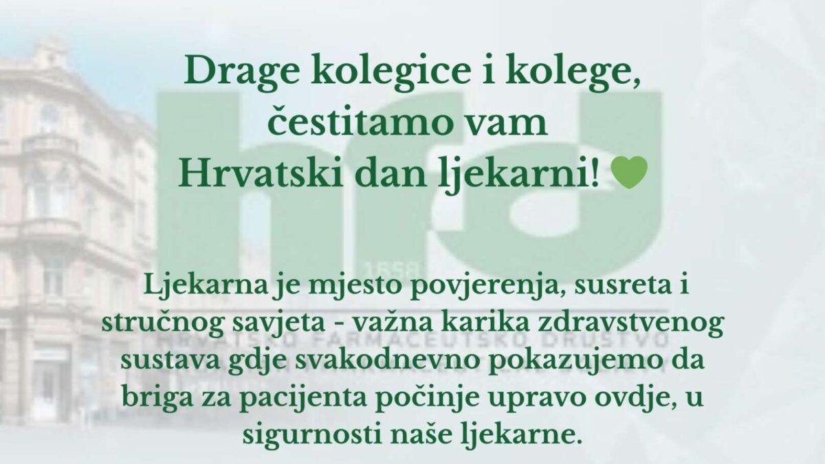 Drage kolegice i kolege, sretan Vam 29. listopada, Hrvatski dan ljekarni!