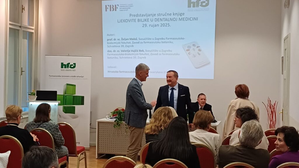 U ponedjeljak, 29. rujna 2025. godine, u organizaciji Hrvatskog farmaceutskog društva svečano je predstavljena stručna knjiga „Ljekovite biljke u dentalnoj medicini“, čiji su autori prof. dr. sc. Željan Maleš i doc. dr. sc. Valerija Vujčić Bok s Farmaceutsko-biokemijskog fakulteta Sveučilišta u Zagrebu, Zavoda za farmaceutsku botaniku.