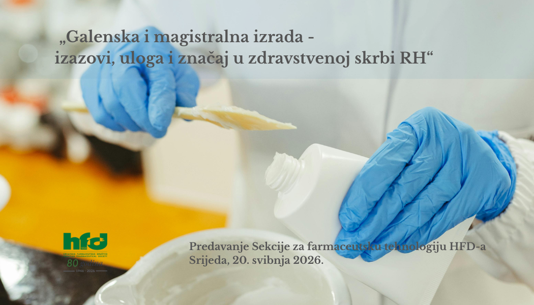 SEKCIJA ZA FARMACEUTSKU TEHNOLOGIJU HFD-a organizira predavanje u srijedu, 18. ožujka 2026., u dvorani HFD-a, Masarykova 2, s početkom u 18 sati….